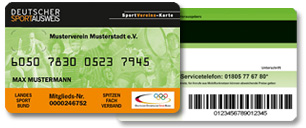 Identifikation durch aufgedruckten Namen, Verein, Ausweisnummer und Erstsportart
